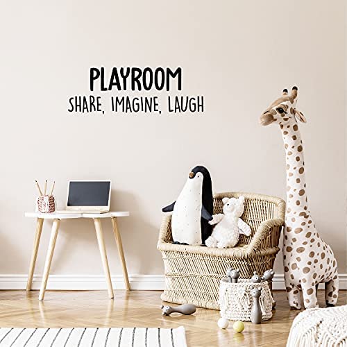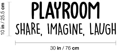 Our high-quality vinyl adhesive decal quote Playroom. Share, Imagine, Laugh comes in 10 inches by 30 inches. The pictures are for display and inspi…