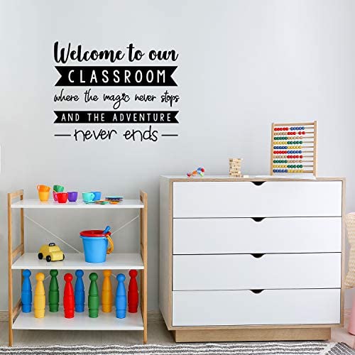 ? Our high-quality vinyl adhesive decal quote Welcome To Our Classroom Where The Magic Never Stops And The Adventure Never Ends comes in 16.5 inche…