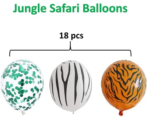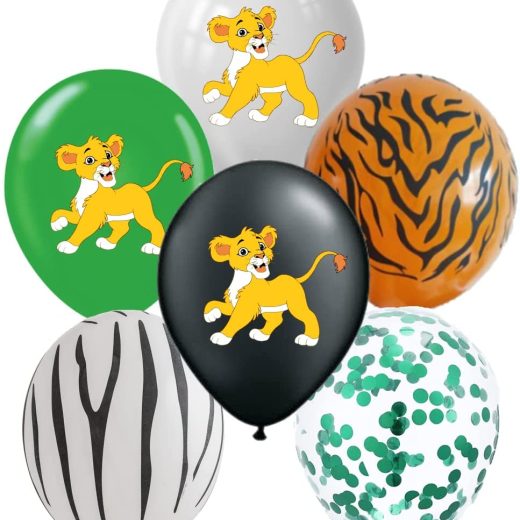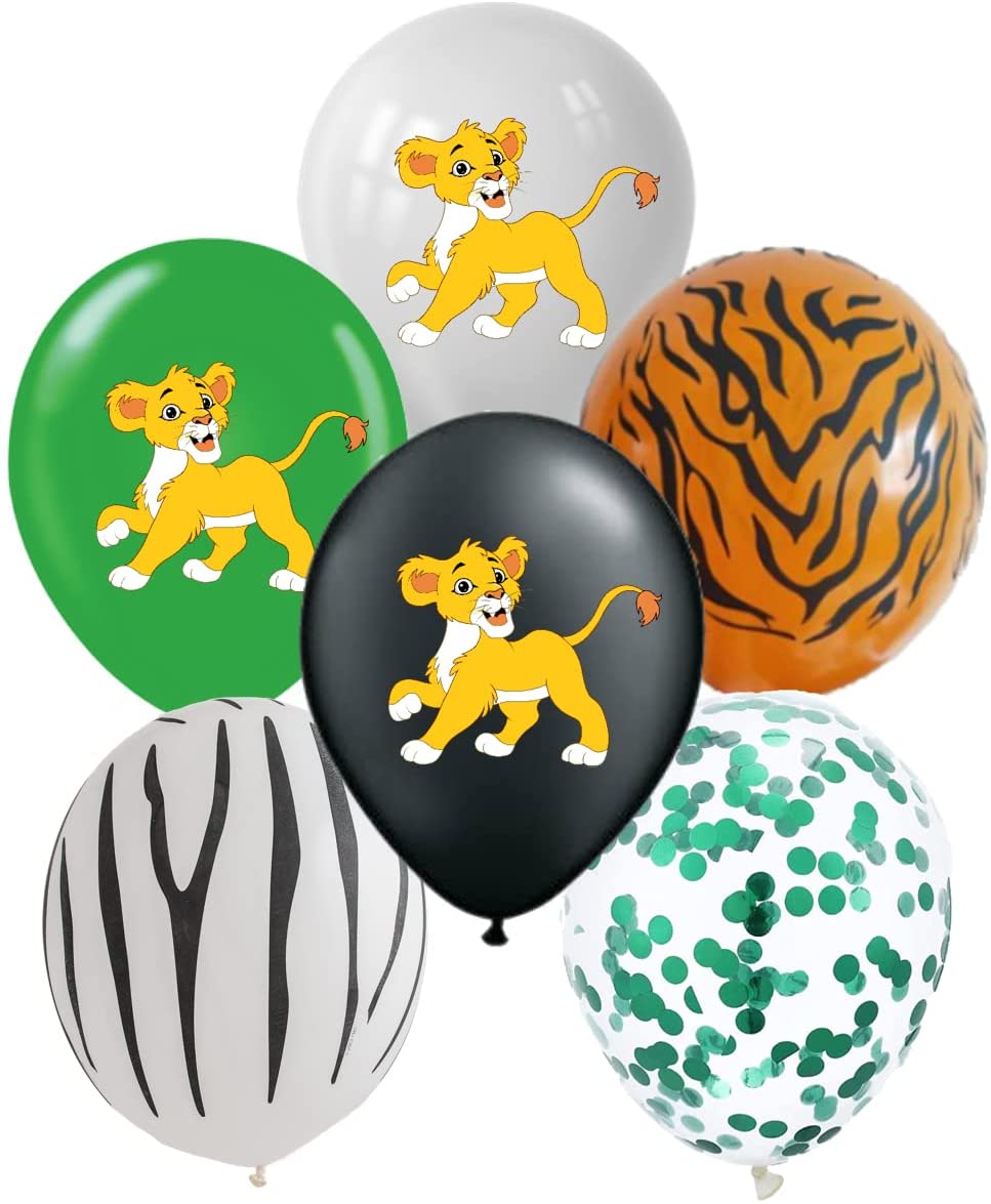 Party Favor for Jungle Safari These are the balloons for you 30 Pieces safari animal balloons for safari zoo animal parties decorations: 6x green confetti balloons, 6x zebra like white balloons, 6x tiger like orange balloons, 4x Baby lion Black balloons, 4x Baby lion Green balloons, 4x Baby lion White balloons These safari animal theme party balloons kit is suitable to any event for kids, it can be applied for tropical jungle animal cake, safari themed birthday party garland, go wild party, zoo animal gender reveal, wild one baby shower Also included New design Baby Lion Colorful Balloons for Lion theme party 100% Product Warranty, Accept Returns No Questions Asked