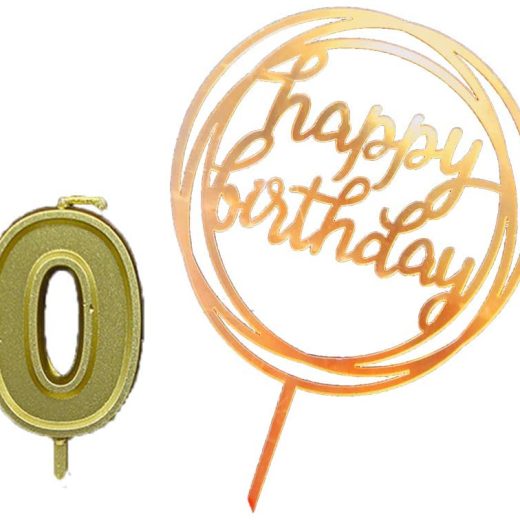 Votono Birthday Candles Wedding Anniversary Celebration Party Number Cake Candle with Hppy Birthday Ins Topper (Gold Candle 0)