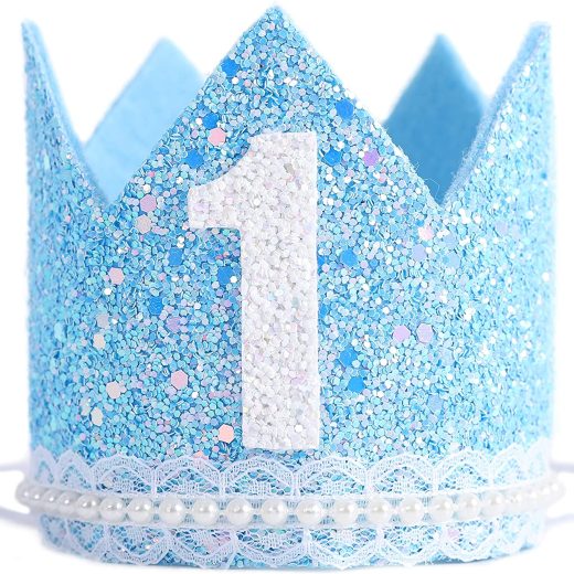 EXQUISITE GLITTER CROWN – glittering blue crown and lace decoration , all hats are made of felt material , with shiny surface and meticulously designed to make it fit the babys head perfectly ! the elastic strap can make it fit all babys head perfectly without making your baby feel uncomfortable A GOOD MOMENT – glitter birthday crown are the perfect accessory for birthday celebrations , memorable photo shoots and every day fun for dress up , birthday crown with blue felt lining , there are pearls on the lace , such a collocation can make your child the focal point of this birthday party , which impresses their guests COMFORTABLE SIZE – our birthday party hat is 3.5 inches high from bottom to top and 10 inches long , and headbands are attached to a comfortable skinny elastic , no need to assemble only elastic strap fits comfortably under childs chin , tilt to the side for a fun , whimsical look ! make your child look more naughty and cute PURELY HANDMADE – the number of our hats is limited because we make all of them by hand , the figures above are carefully glued on by the workers with hot melt glue , and they are not easy to fall off.and the hats are equipped with velcro buckle , easy to adjust CUSTOMER SERVICE – 24-hour online customer service , do not hesitate to contact us if you have any questions , we must try our best to improve our service and products quality , hope you are satisfied with the product