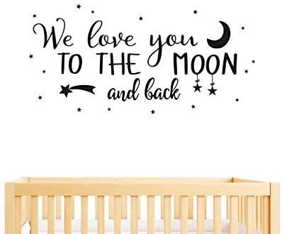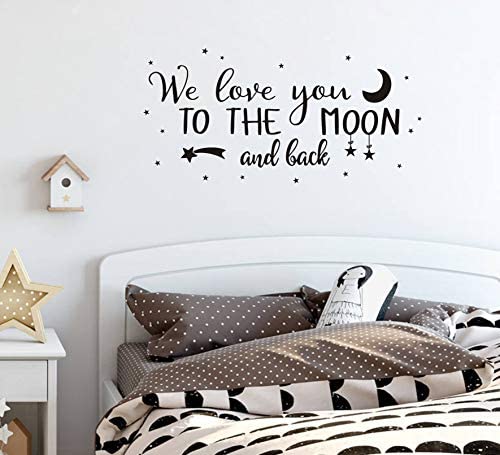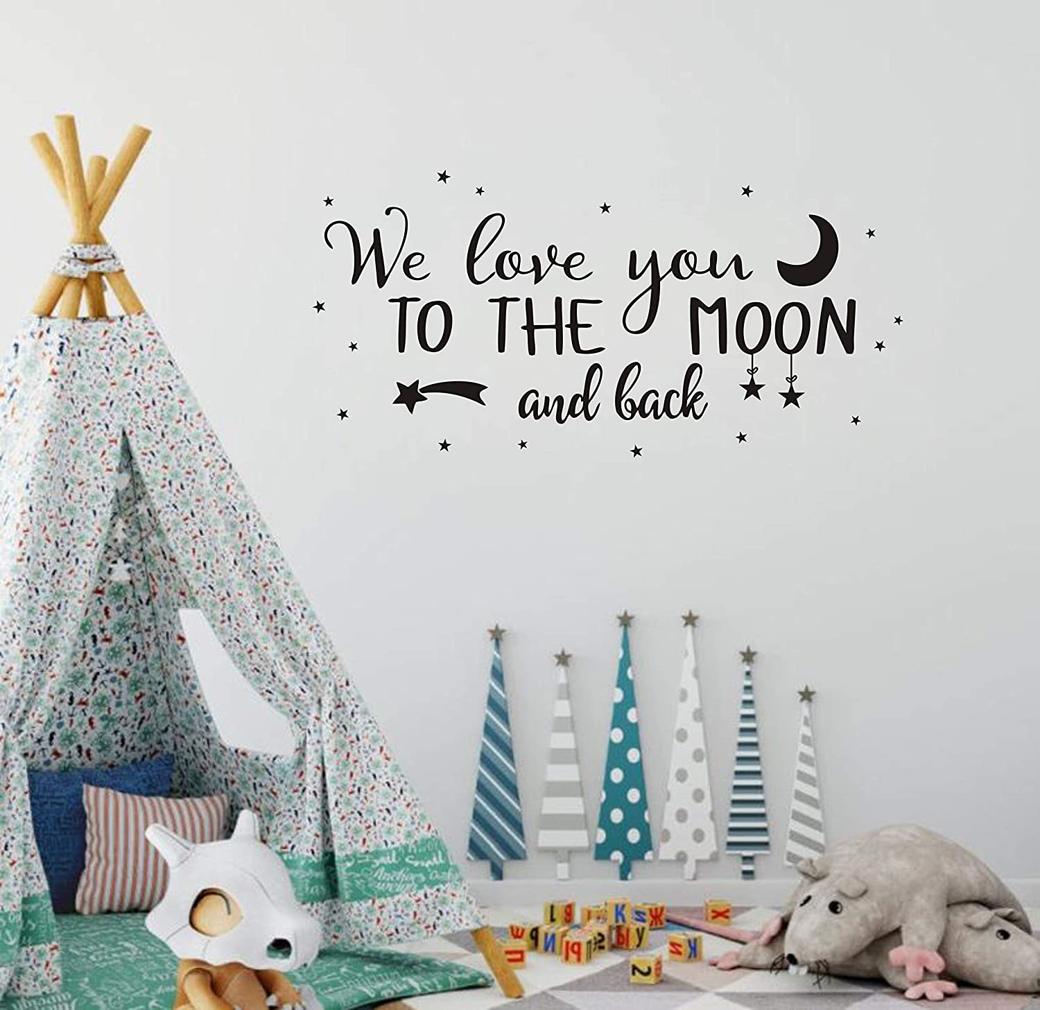 Wall Decal Kids We Love You to The Moon and Back Quote Wall Decals Nursery Vinyl Wall Stickers for Baby Boys and Grils Bedroom Scandinavian Wall Decal (Y29) (Black)