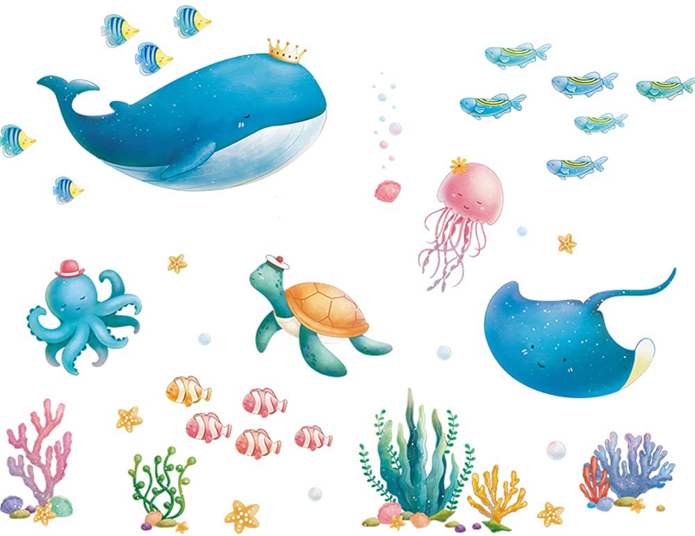 Wall Decals Removable Wall Stickers Vinyl Removable Undersea World Wall Art Decor Dolphins Turtles Jellyfish Seaweed Stickers for Kids Nursery Playroom Bedroom Bedroom Wall Decoration