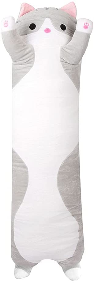 WAQIA Cat Plush Toy Long Cotton Cute Cat Doll Plush Toy Soft Cotton Stuffed Sleeping Pillow Great Gift for Your Girlfriend or Kids for Over 1 Years Old Kids (43inch, Grey)