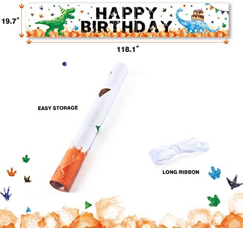 Watercolor Dinosaur HAPPY BIRTHDAY Banner – 19 x 118 Large Outdoor Decorations for Boys Kids Dinosaur Birthday Party Supplies Big Fence Yard Sign P…