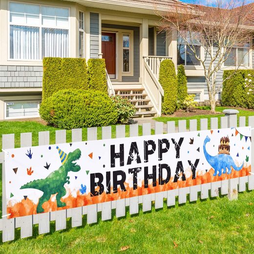Watercolor Dinosaur HAPPY BIRTHDAY Banner – 19 x 118 Large Outdoor Decorations for Boys Kids Dinosaur Birthday Party Supplies Big Fence Yard Sign Photo Background