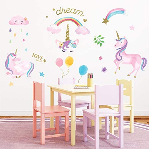 Watercolor Magical Unicorn Peel and Stick Wall Art Sticker Decals for Girls Room Nursery Parties