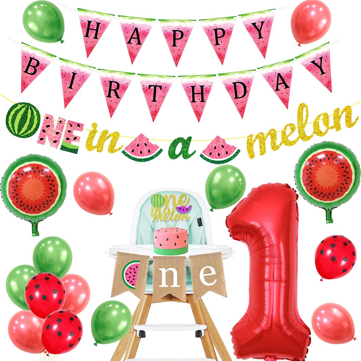 Watermelon First Birthday Decorations One in A Melon Garland High Chair Banner Kit Cake Topper Watermelon Balloons, Summer Fruit Theme 1st Birthday Boys or Girls Party Supplies