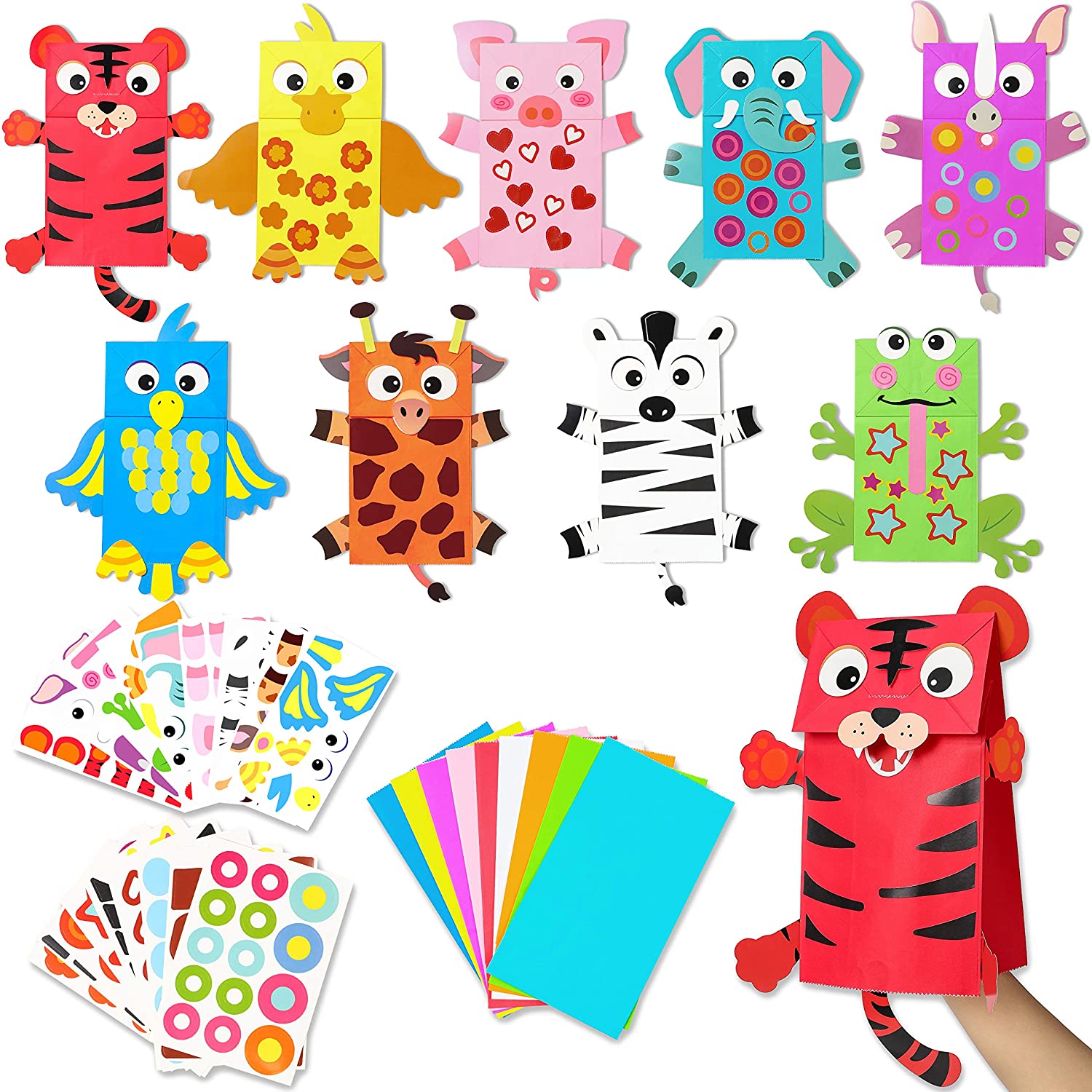 WATINC 9Pack Hand Puppet Art Craft Paper Sock Puppets DIY Making Your Own Puppet Kits Party Favors Wiggle Googly Eyes Storytelling Party Supplies I…