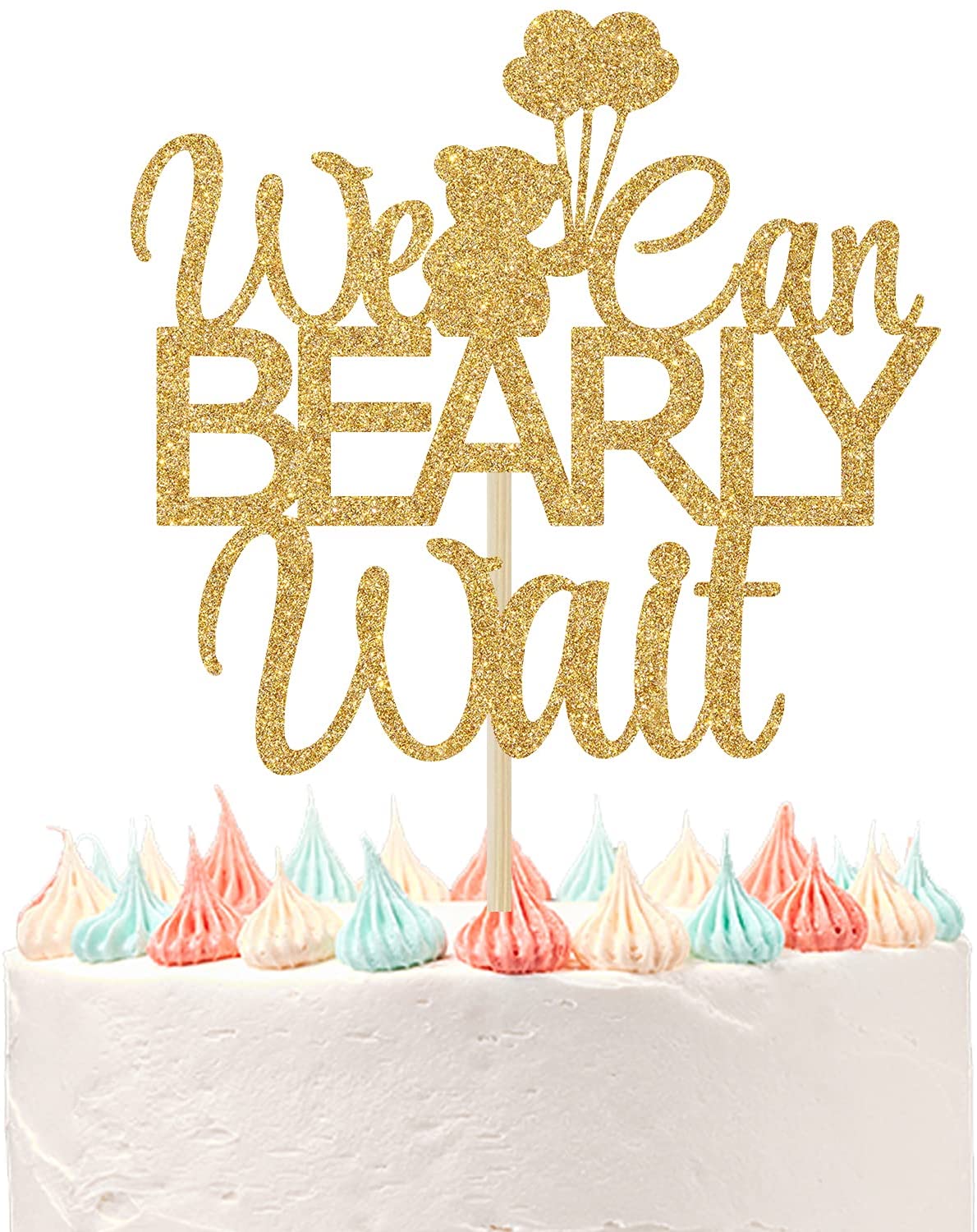 We Can Bearly Wait Baby Shower Cake Topper, Baby Bear Theme Baby Shower Gender Reveal Party Decoration Supplies Gold Glitter.