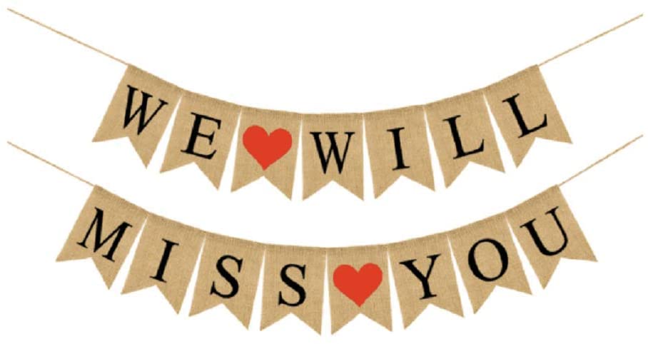 WE WILL MISS YOU Banner Burlap Bunting Banner Garland Flags for Valentines Day Wedding Party Decorations