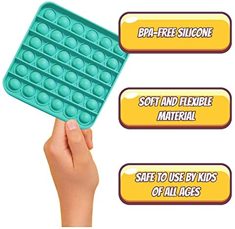 Develops cognitive skills. The pop toy is an anxiety and stress relief toy, great to develop hand-eye coordination. The sensory toys are also helpful in keeping you focused and creative. Made of BPA-free silicone: Pop it toy is safe for kids of all ages, it’s washable, has a soft material, but durable as well, which makes it possible to be repeatedly pressed for a long time. Have fun everywhere! Pop it fidget toy has the perfect size and lightweight to be carried around easily. Pop toys are the perfect way to keep your children focused on a road trip, on the plane, or even in a restaurant. Many ways to use it: The bubble fidget toy is the perfect fun gift to offer your friends with kids. There are many ways to play with the fidget pop it. You can push pop it bubbles in line, bend it, squeeze it, or even use it as a frisbee to play around with your dog Great way to spend time alone or have fun with your friends: Pop it fidget toys are awesome to use on your own in order to develop logical, mathematical thinking, and fine motor skills. Pop its are also a great way to enjoy time with friends, challenge each other and have fun together.