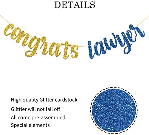 WeBenison Congrats Lawyer Banner Law Grad Graduated Party Banner/Law School Graduation Party Decorations Blue Glitter