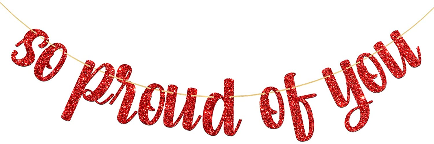 WeBenison So Proud of You Banner Congrats Grad Party Banner/Senior 2022 Graduation Party Decorations Red Glitter