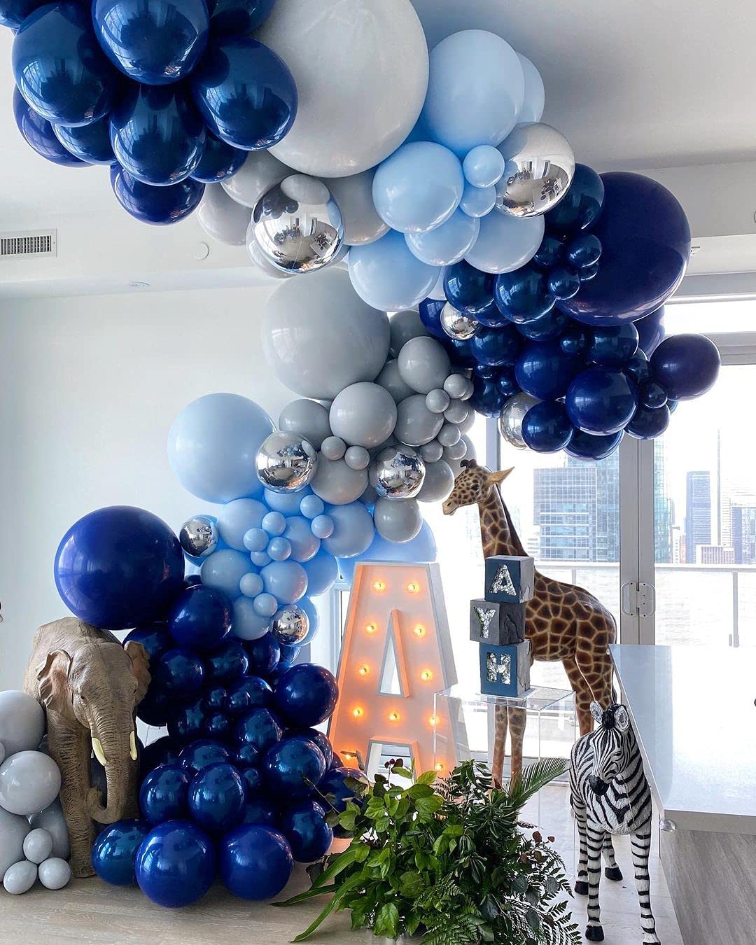 Wecepar 168pcs DIY Balloons Garland with Night Blue Macaron Blue Metallic Sliver Grey Balloon Arch Garland For Jungle Safari Theme Party Woodland , Weddings , Birthday Parties , Baby shower Party Decorations