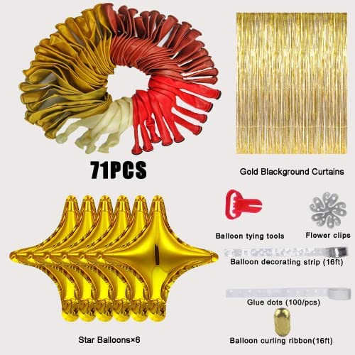 WECEPAR Red and Gold Balloon Garland Arch Kit with Ruby Red and Gold Balloon, Star Balloon Confetti Balloons and Background Curtain, for New Year Wedding Birthday Bridal Shower Supplies Baby Shower Anniversary Party
