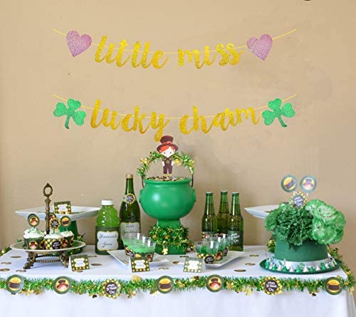 Weimaro Little Miss Lucky Charm Banner, Baby Girl St. Patricku2019s Day Birthday Party Decorations, Girl St Patricks Day Irish Birthday Party Decorations Supplies, St Pattyu2019s Day Party Decor