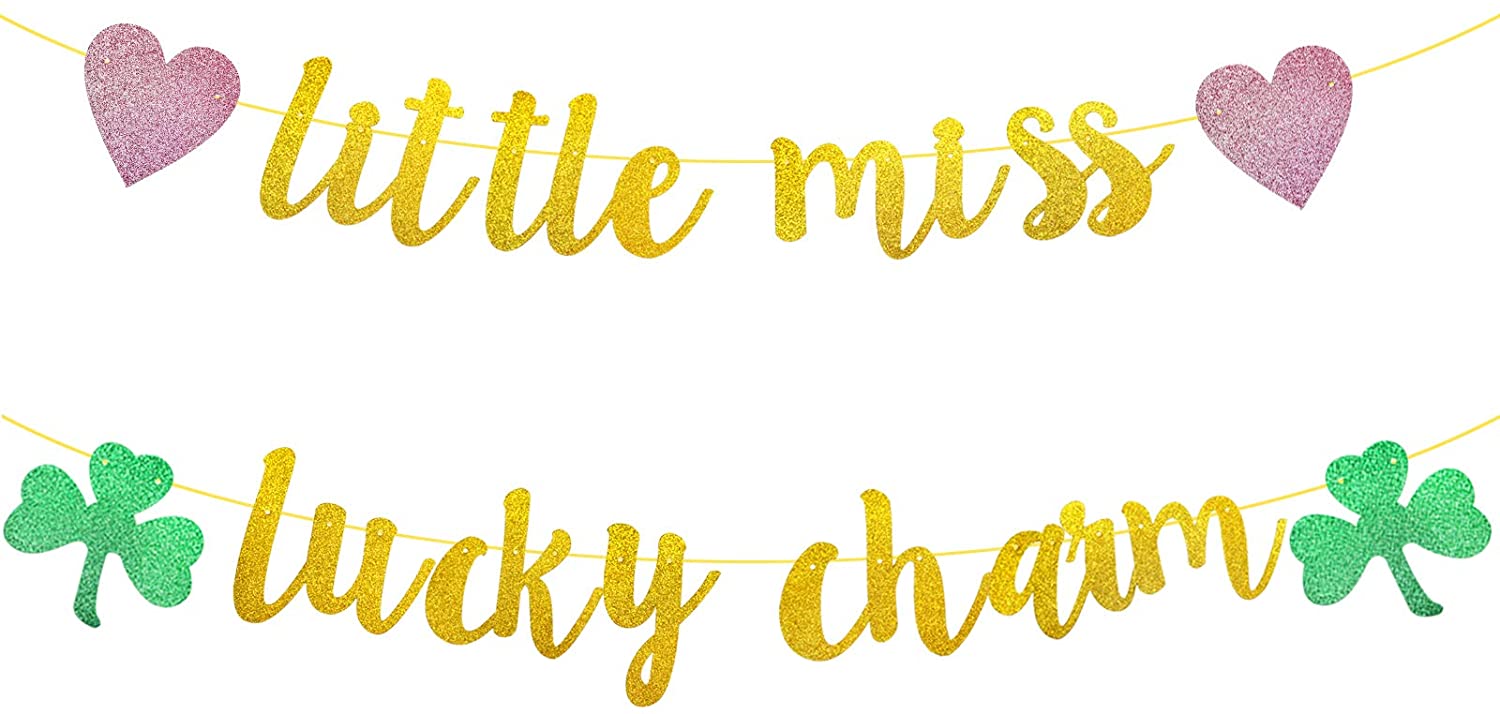 Weimaro Little Miss Lucky Charm Banner, Baby Girl St. Patricku2019s Day Birthday Party Decorations, Girl St Patricks Day Irish Birthday Party Deco…