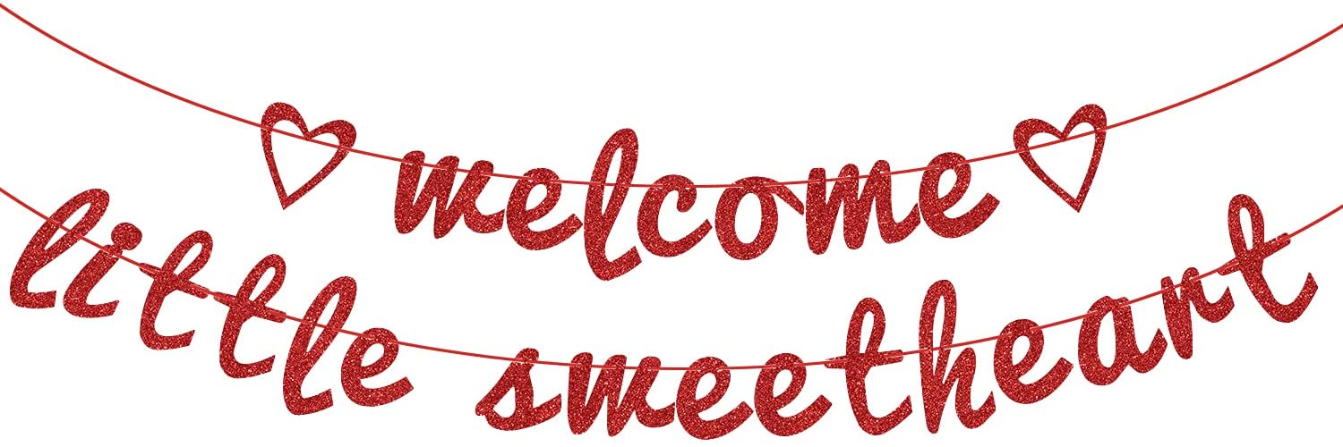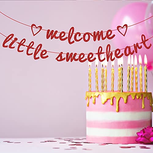Welcome Little Sweetheart Banner – Welcome Baby Girl, Sweet Baby Girls 1st Birthday Baby Shower Party Decoration Supplies Red Glitter.