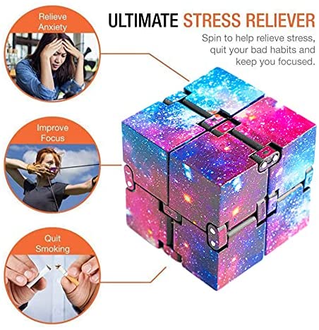 What will you get 1 x Infinity Cube Square of Galaxy. A NEW FIDGET CUBE, A NEW SENSATION A NEW FIDGET CUBE: This Infinity fidget toys Square Cube has Fun, Unique, Innovative sensory design and serves as one of the best, cool stress toys or just as a fun healthy habit. A NEW SENSATION: Different to your standard fiddle toys or finger fidgets, as it seems to fold infinitely for a continuous flow of concentration and focus. It fits snugly into the hands and the folding action is controlled seamlessly with thee finger tips. MATERIAL Crafted with a high-grade ABS plastic. WEIGHT 43.5g DIMENSIONS 8 X 4 X 2 centimetres. Infinity Cubes have a Fun, Unique, Innovative Design as one of the long lasting legacies of the fidget toy craze. Unlike than your standard plastic fidgetters, this is still one of the enduring sensory fiddle toys that can be folded, changed, swapped and moved to create new shapes and designs – and all with a single hand. Crafted with a high-grade ABS plastic, this lightweight finger fidget offers a fun, original design!