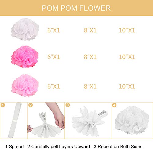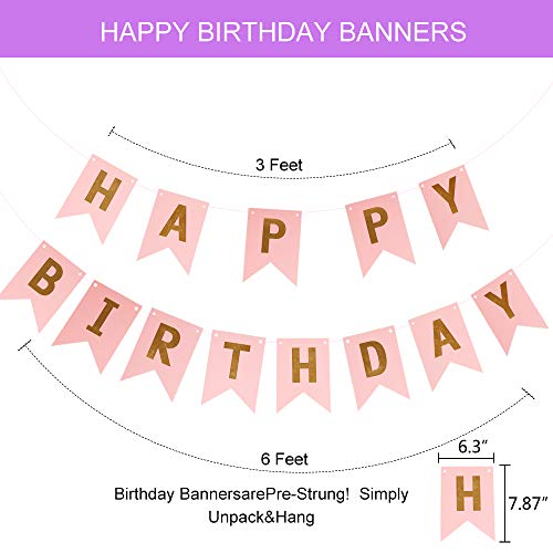 WESTGO Birthday Decorations | Party Supplies Pink Birthday Banners Decoration Kit Party Pack Hanging Swirls Pom Poms Flower Garland Colorful Confetti Balloons (All in one Pack)