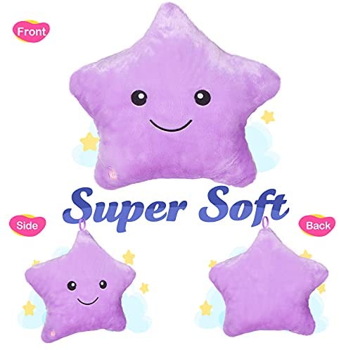 WEWILL Creative Twinkle Star Glowing LED Night Light Plush Pillows Stuffed Toys (Purple)