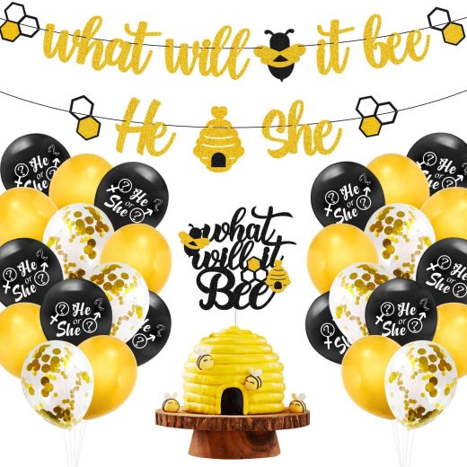 What Will It Bee Gender Reveal Party Decorations Set He or She Bee Banner Bumble Bee Cake Topper 12