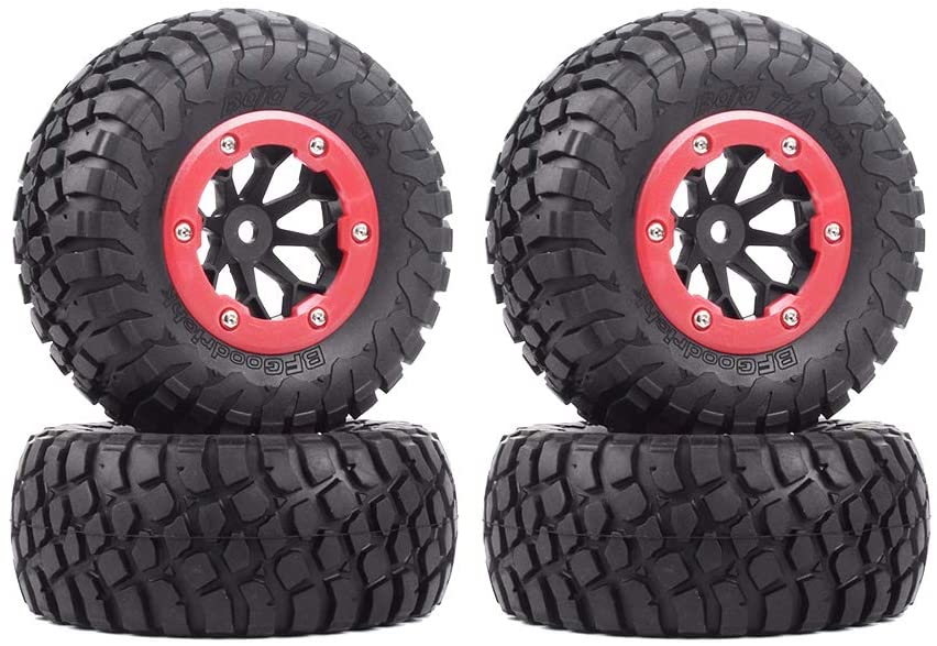 Wheel Set 4pcs Wheel Tires with Beadlock Rims for 1:10 RC Short-Course Truck Slash 4×4 VKAR 10SC HPI (AX-4007)
