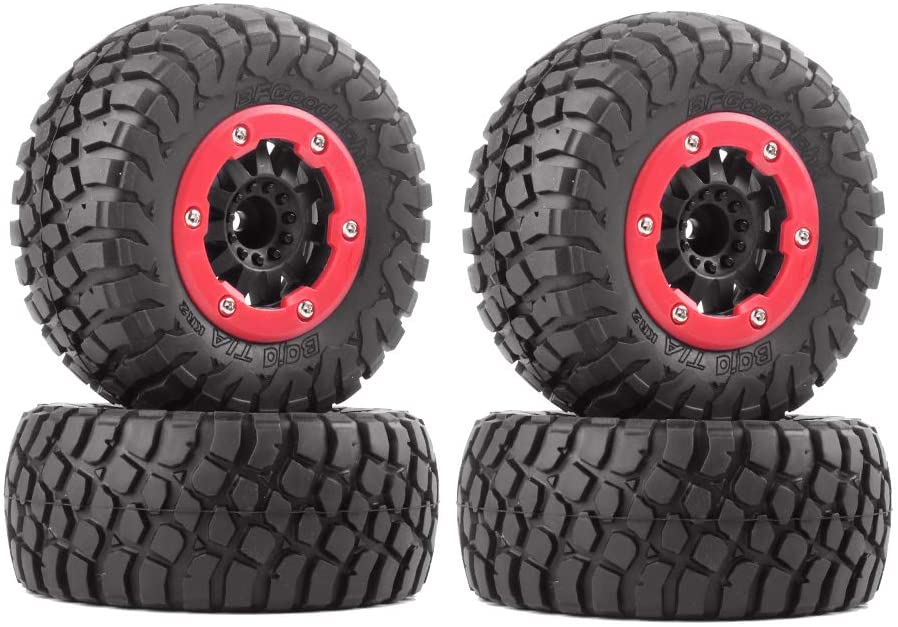 Wheel Set 4pcs Wheel Tires with Beadlock Rims for 1:10 RC Short-Course Truck Traxxas Slash 4×4 VKAR 10SC HPI (AX-4008)