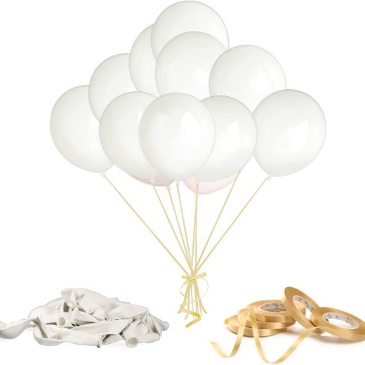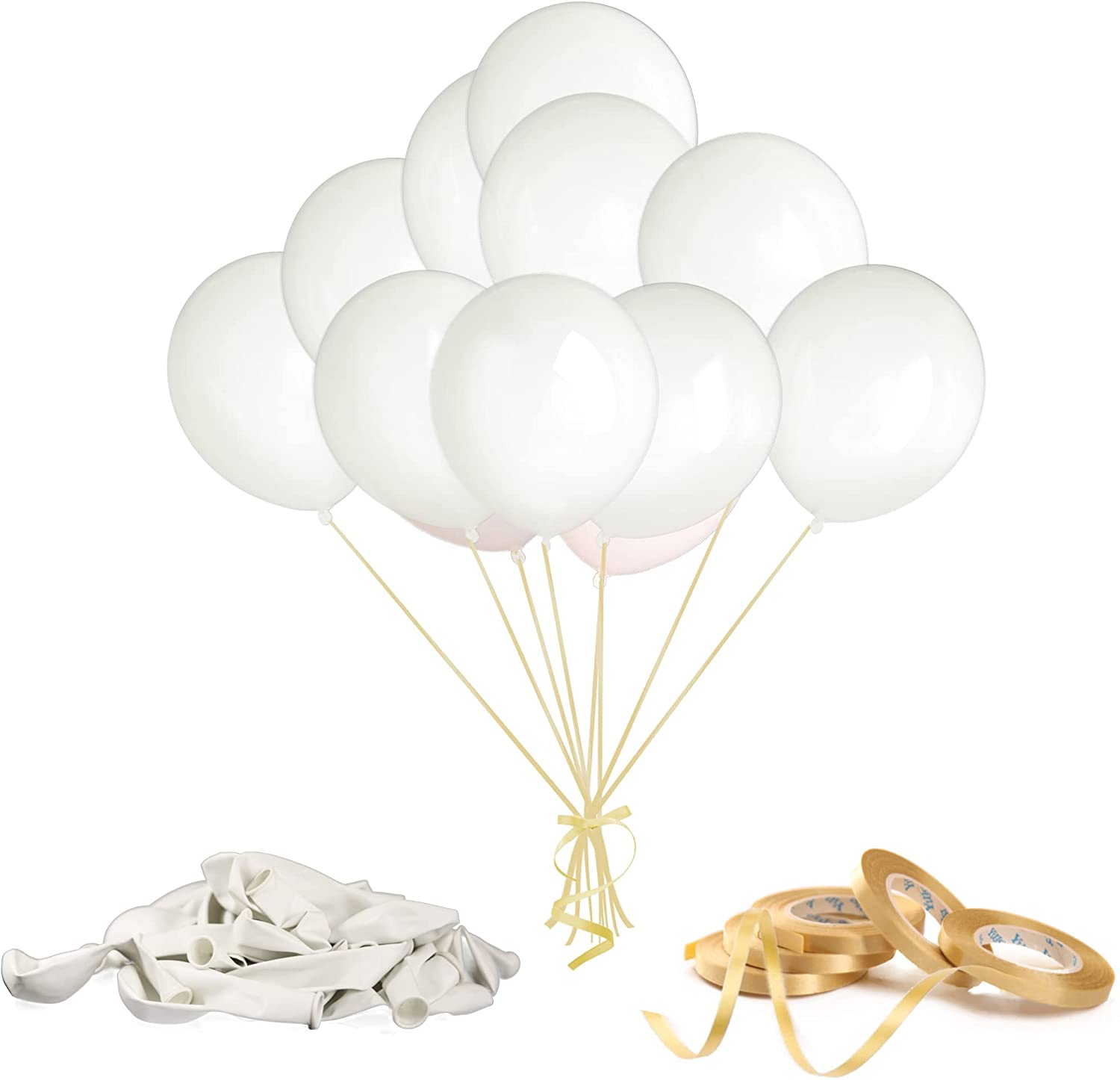 White Balloons Party Supplies u2013 100Pcs Pack Party Supplies with Balloons and Ribbons u2013 Gorgeous Balloons for Gender Reveal, Bachelorette Party u2013 Durable and Non-Toxic