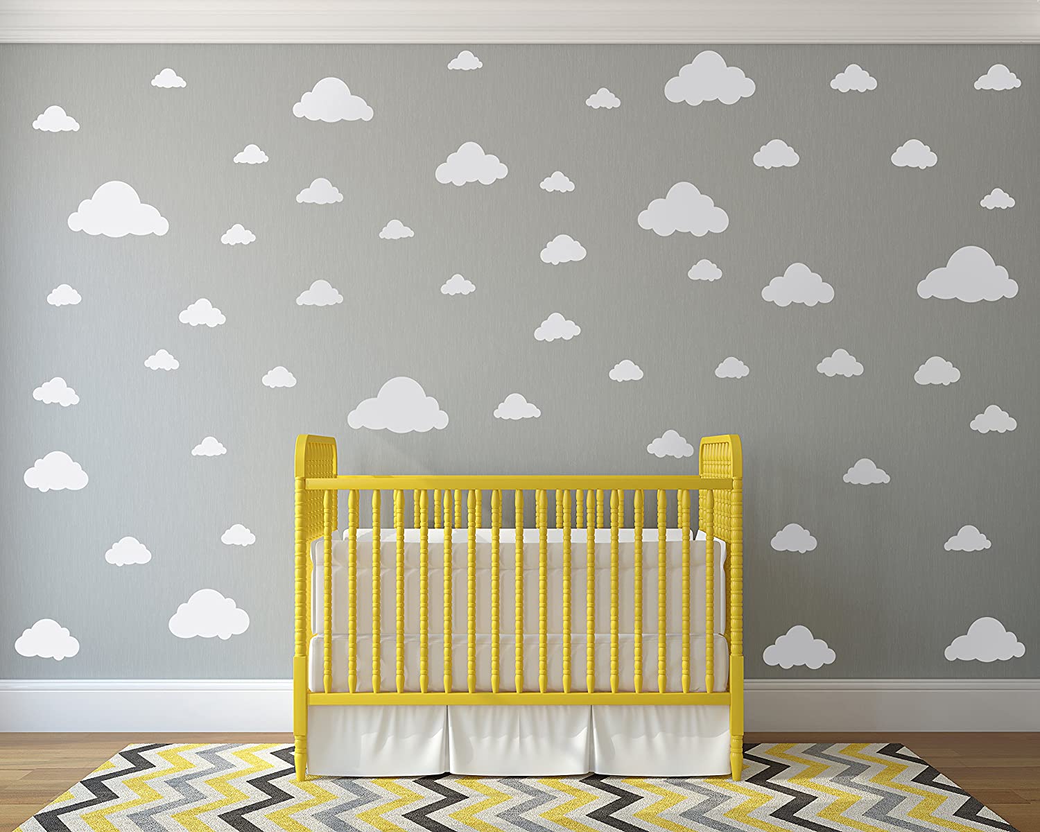 White Clouds Sky Wall Decals – Easy Peel + Stick 50 Clouds Pack – Kids Playroom Nursery Sky for Baby Boy or Girl – Vinyl Sticker Art Large Decoration Graphic Decor Mural