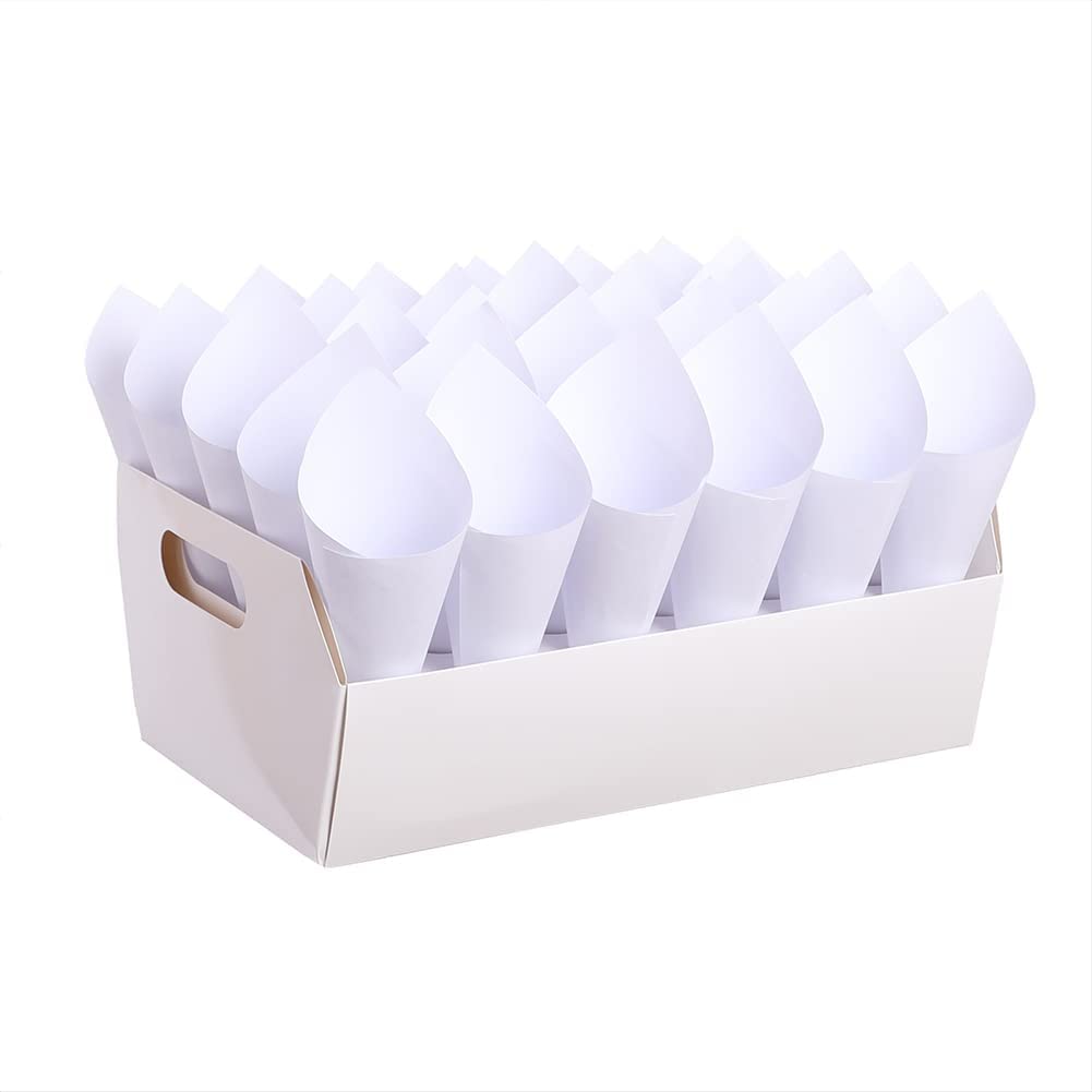 White Confetti Cones Boxes for Wedding Party – Stand Tray Box with 32 Pieces White Cones Paper, 30 Holes, Perfect for a Celebration Such as a Wedding