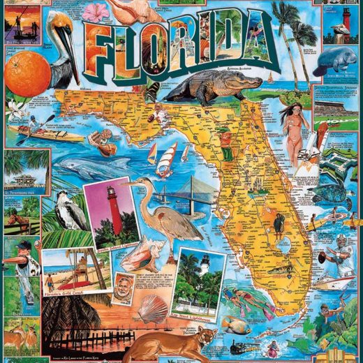 FAMILY TIME: Jigsaw puzzles are a great family activity Enjoy some quality time and have some fun with your family while putting together one of White Mountain Puzzles’ beautifully detailed jigsaw puzzles THE STATE OF FLORIDA: Artist James Mellett skillfully highlights the attractions in the State of Florida with one of our White Mountain Puzzles The artwork on this puzzle emphasizes its wildlife, sailing and more PUZZLE ARTWORK: Artist James Mellett definitely captures the Sunshine State in all its tropical glory Make believe you pay a visit to Hemingways home or travel to Miamis colorful South Beach THE PIECES: This puzzle of the State of Florida consists of 1000 unique interlocking pieces that are made of sturdy blue chipboard on recycled paper It has extra large pieces making them easy to pick up off your flat surface FINISHED PRODUCT: When you and your family complete this delightful State of Florida puzzle by White Mountain Puzzles, you will have a colorful 24” x 30” puzzle to frame and hang on any wall in your home