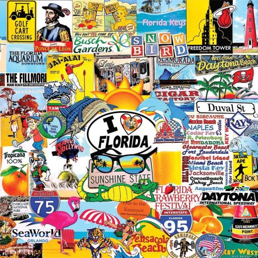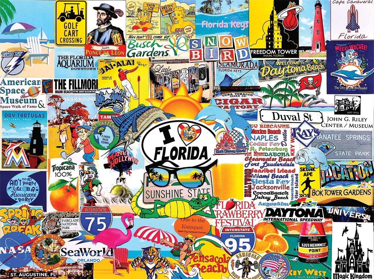 FL STATE: The Sunshine State appeals to many, including our neighbors who escape our New England weather for a few months in the sun. This collage depicts many of their favorite attractions & symbols. HIGH QUALITY DESIGN: This fun 1000 piece jigsaw puzzle contains thick interlocking pieces made from recycled premium blue chipboard that give a sturdy feel and easy grip. Made in the United States. Finished size is 24” x 30”. SPARE TIME: This puzzle comes with thicker and larger pieces, so it’s easier to grip and put together. It’s a favorite leisure activity for winter holidays or for any other relaxing time. For kids, puzzles are a unique alternative to toys. CHILDREN & ADULTS: Puzzles are great for the family, including the youth and old. This is one of the best and most effective ways for any child, boy or girl, to relax each year. This puzzle also comes with a stand that’ll hold up the box lid for reference. ART & PICTURES: White Mountain presents beautiful puzzles created with photography and artwork. The paintings and photos include detailed images of natural landscapes, people, objects, and other classic designs.