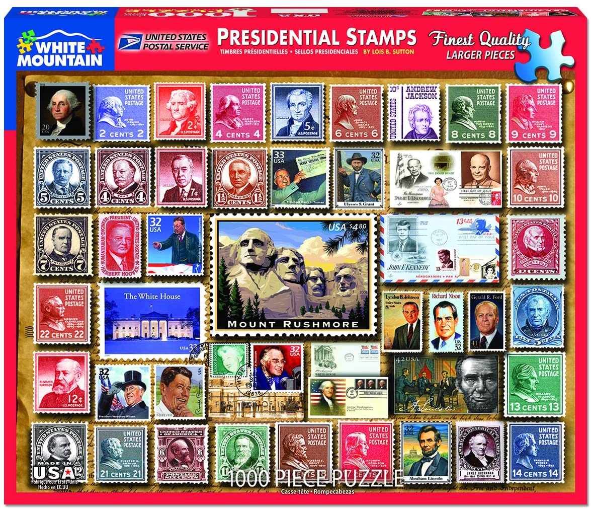 PRESIDENTIAL STAMPS: The fantastic Presidential Stamps Jigsaw Puzzle features wonderful portraits of American historical figures assembled in a colorful stamp collage by artist Lois B. Sutton. 1000-PIECE PUZZLE: Thrill and challenge your family and friends piecing together this incredible 1000-piece jigsaw puzzle. Bring home hours of fun and entertainment everyone will enjoy. ABOUT THE ARTIST: Enjoy the masterful design artistry of Lois B. Sutton. Known for his vintage-themed designs, Lois’ art puzzles are detailed, bright and colorful. MORE TO PUZZLE BUILDING: Art jigsaw puzzles are a fun, inexpensive way to enjoy works of art firsthand. Use to boost valuable motor skills, hand-eye coordination, and problem-solving skills. SPECIFICS: Includes 1,000 extra large puzzle pieces made of sturdy blue chipboard on recycled paper. Puzzle dimensions (completed): 24 x 30 inches. 100% customer satisfaction guarantee. Made in USA.