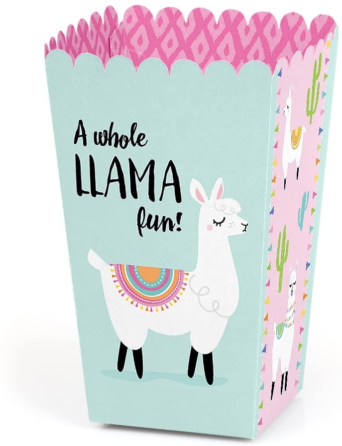 Whole Llama Fun – Llama Fiesta Baby Shower or Birthday Party Favor Popcorn Treat Boxes – Set of 12