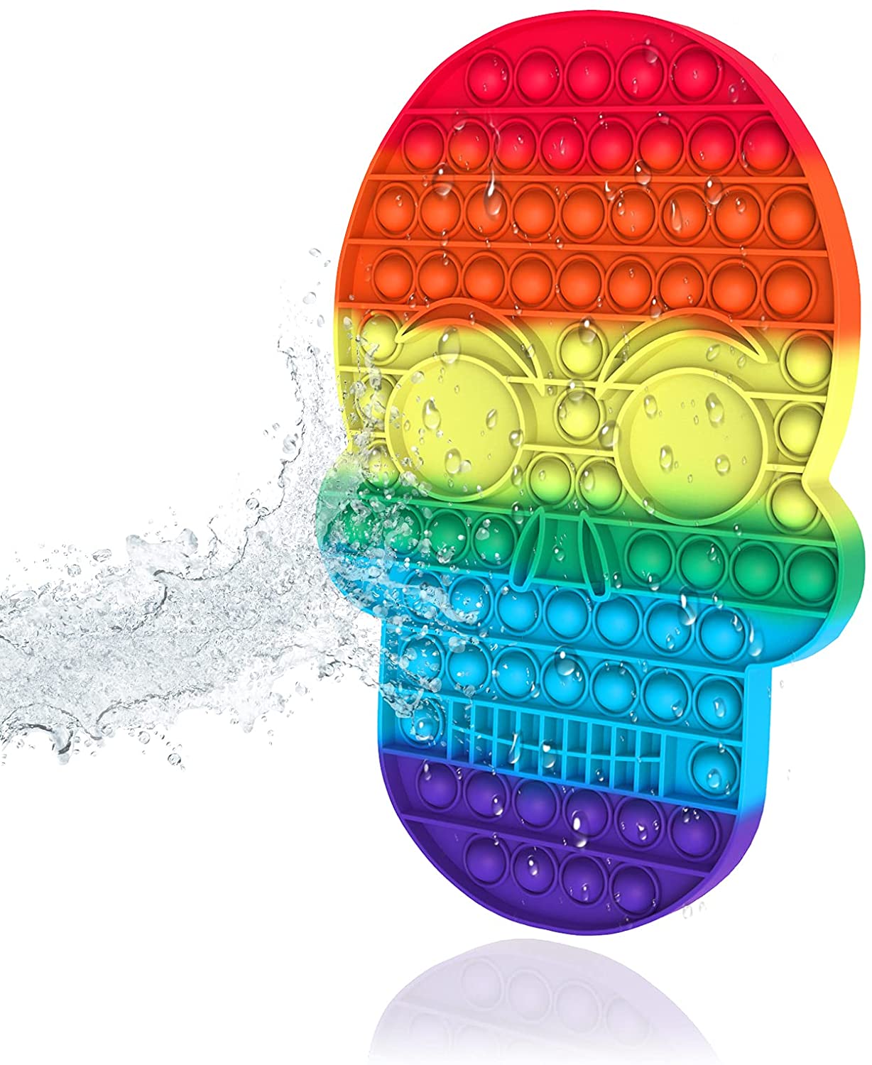 WHPXJY Skull Halloween Large Bubble Pop Fidget, Push Pop Funny Silicone Bubble Toy Fidget Toy Stress Relief Anti-Anxiety Autism Gift for Men/Women /Kids/Teens (Skull-Rainbow)
