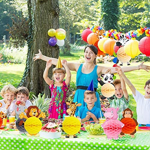 Wild Jungle Animals Honeycomb Ball Centerpieces Safari Animals Decor for Baby Shower Kids Jungle Theme Party Supplies