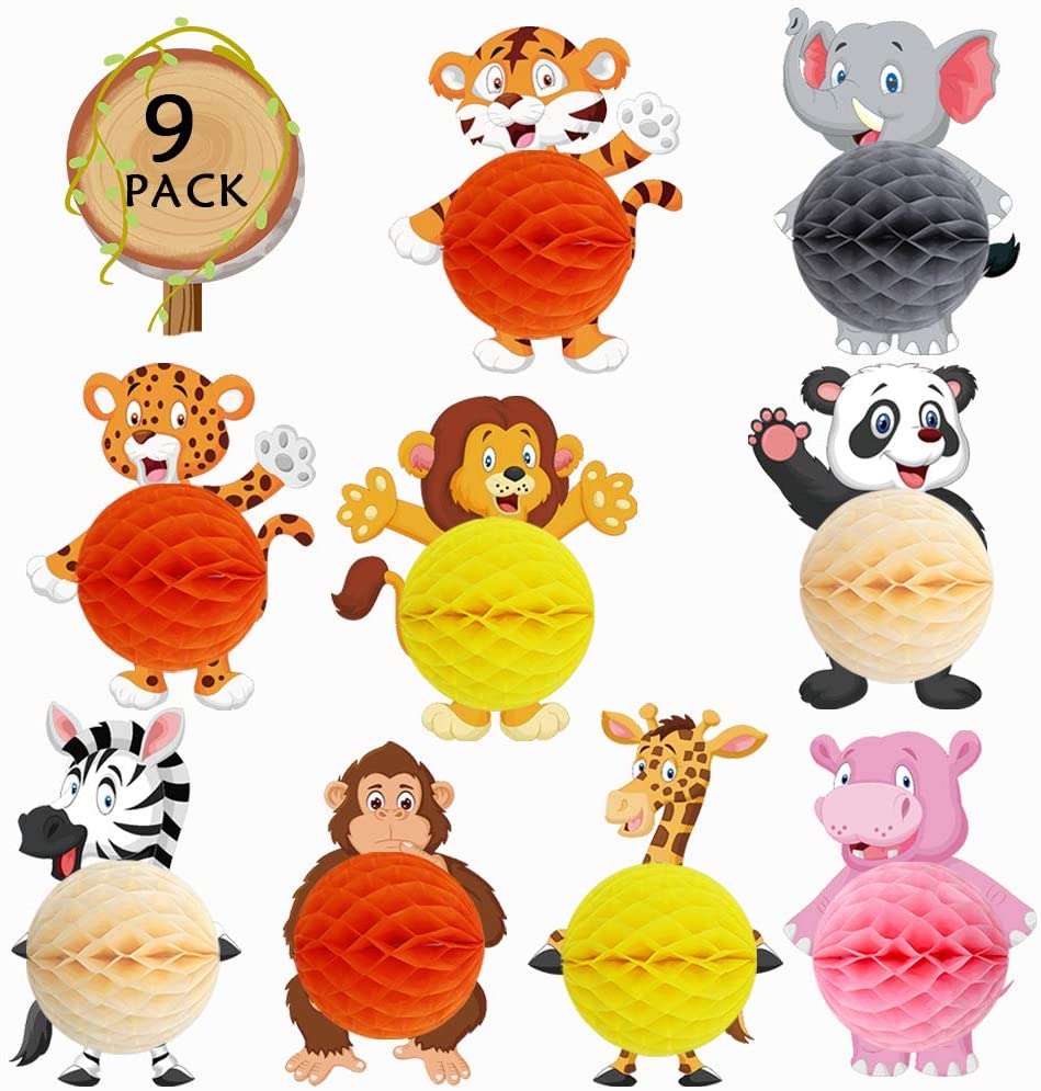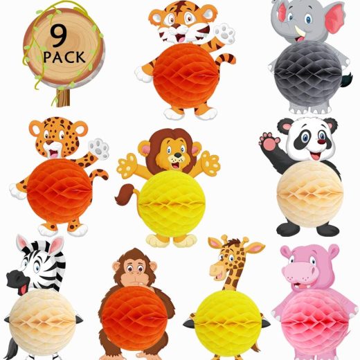 WILD JUNGLE ANIMAL HONEYCOMB BALL CENTERPIECES What Will You Get 9 Cutouts of Jungle animals: – 1 Lion cutout (high – 10.5 inches, wight – 9.3 inch…