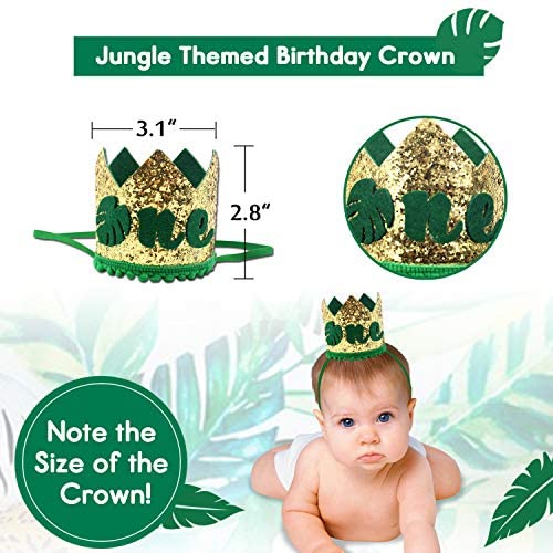 Wild One Birthday Decorations For Boys Jungle Safari Highchair Banner Tropical Wild One Themed 1st Birthday Party Decorations Crown Hat Cake Topper Set Baby Boy Zoo Animals Party Supplies Set of 3