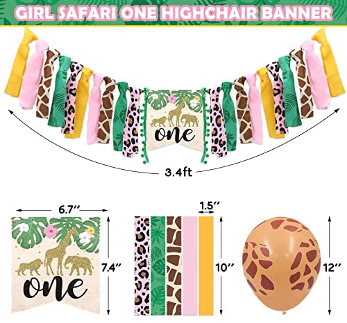Girl Wild One First Birthday Party Supplies – Celebrate your little ones 1st birthday with this jungle safari high chair banner decorations set. Th…