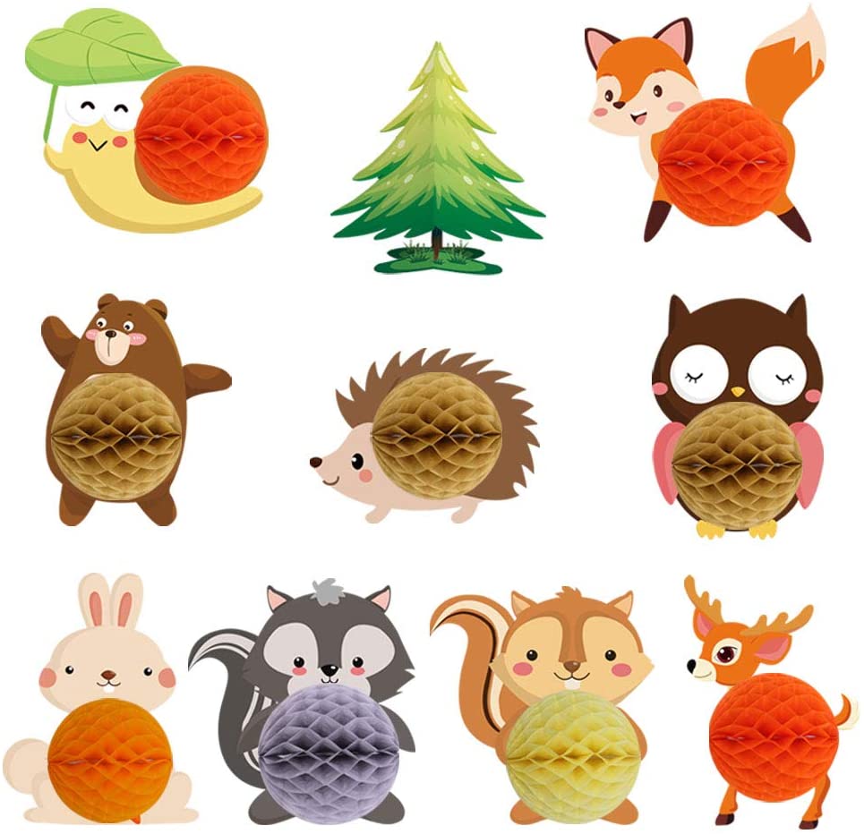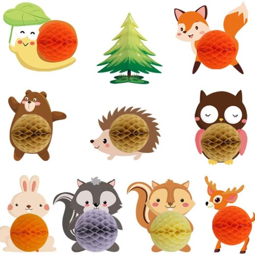 WOODLAND HONEYCOMB BALL CENTERPIECES What Will You Get 7 Cutouts Woodland Creatures: – 1 Bear cutout (high – 10inches, wight – 10.7 inches) – 1 Lit…