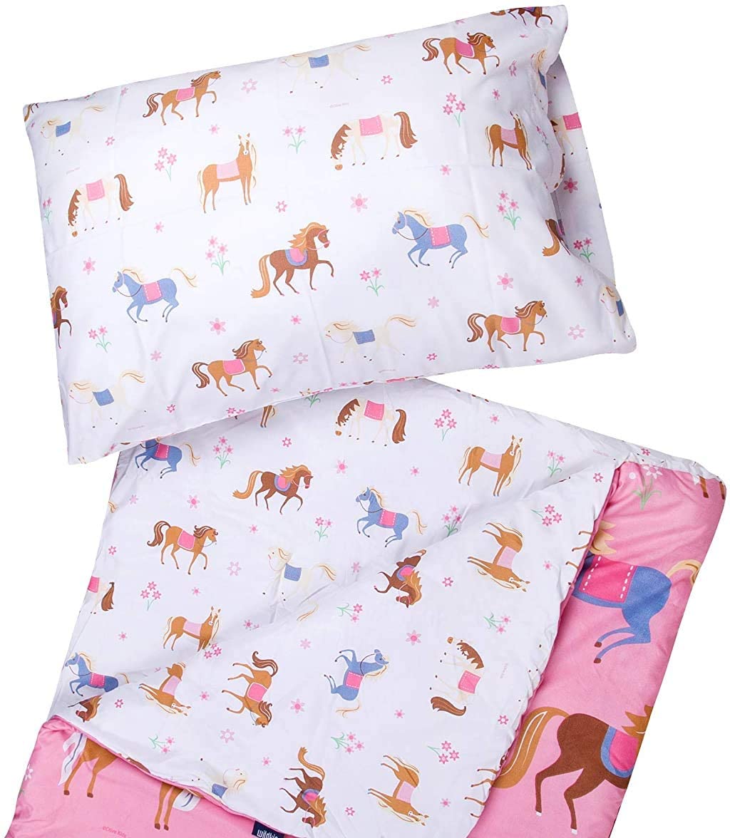 Wildkin Kids Microfiber Sleeping Bag for Boys and Girls, Includes Pillow Case and Stuff Sack, Perfect Size for Slumber Parties, Camping and Overnight Travel, BPA-free, Olive Kids (Horses)