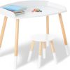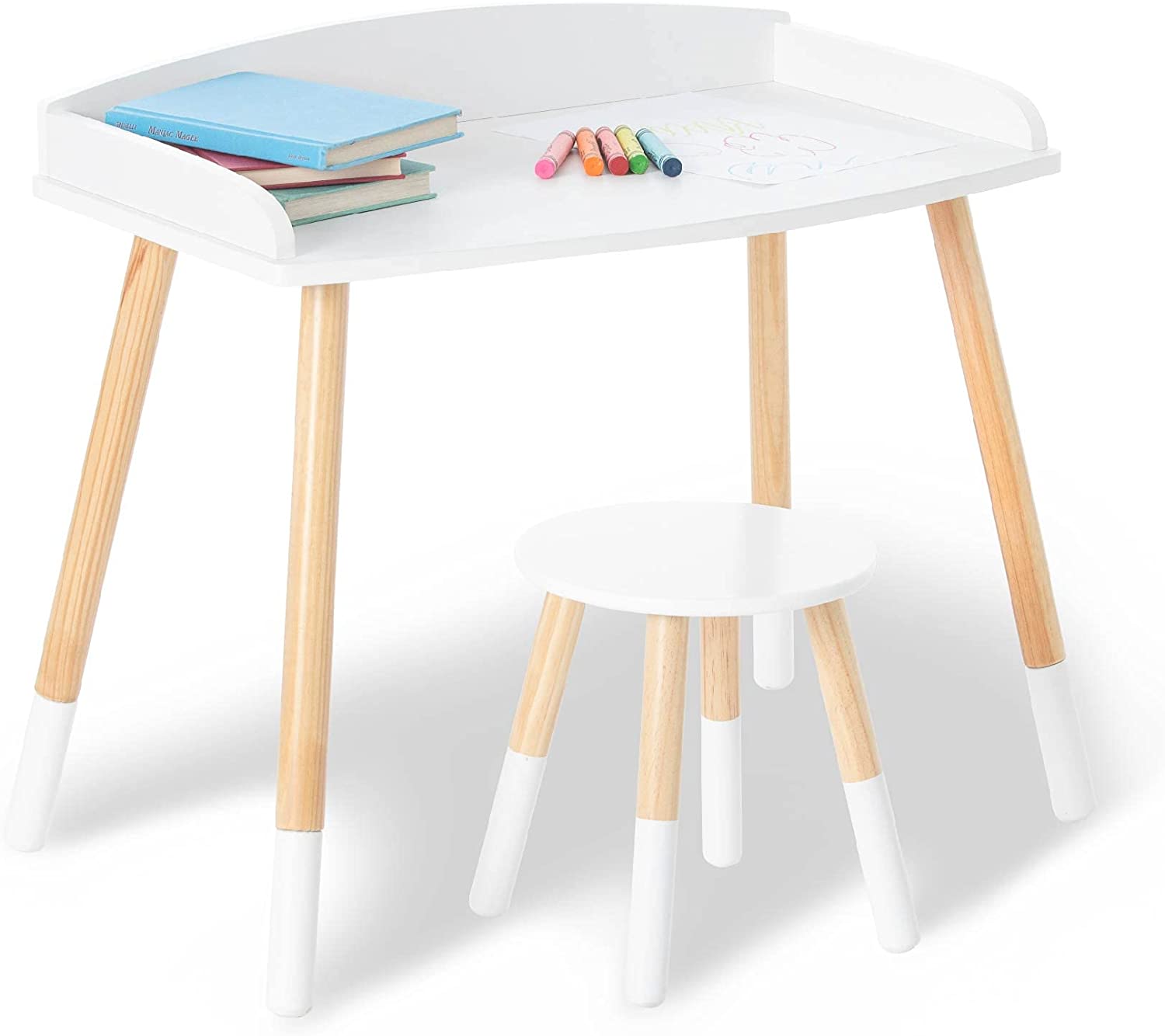 Wildkin Kids Modern Study Desk and Stool Set for Boys and Girls, Includes One Matching Stool, Classic Timeless Design Features Panel Edges on Tabletop and Solid Wood Legs (White w/ Natural)