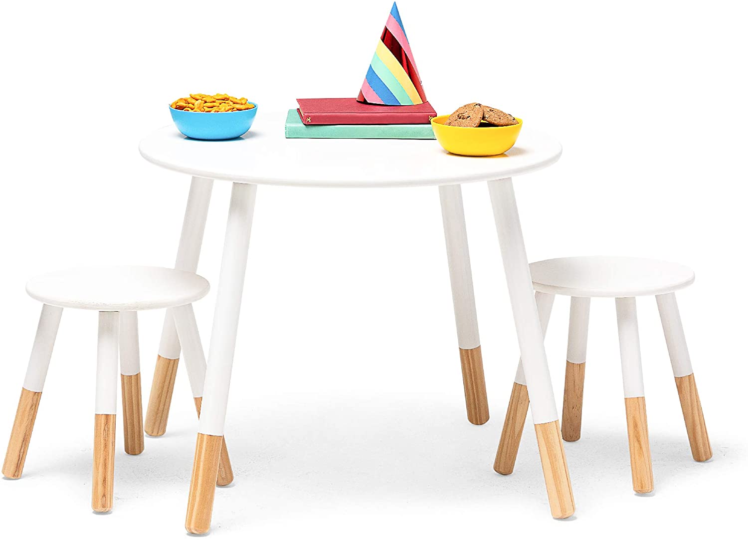 Wildkin Kids Scandi Table and Chairs for Toddlers Boys and Girls, Table Set for Kids Includes Two Matching Stools, Features Solid Wood Legs, Ideal for Homes, Daycares, and Classrooms (White/Natural)