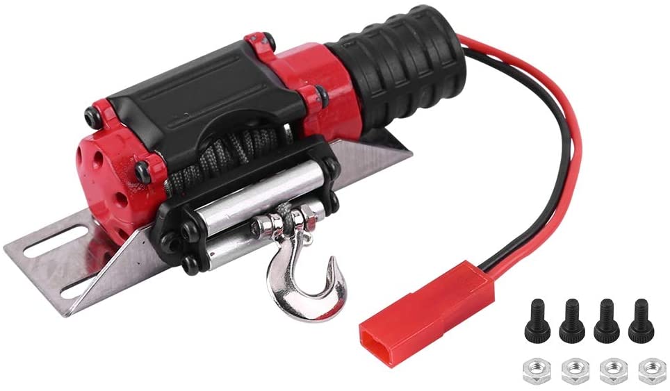 Winch,Model Vehicle Accessory Simulation Motor Winch for TRX-4 SCX10 1/10 Scale RC Crawler Car(Black)