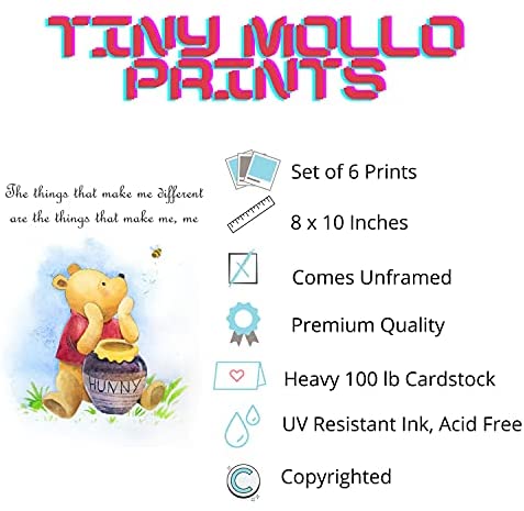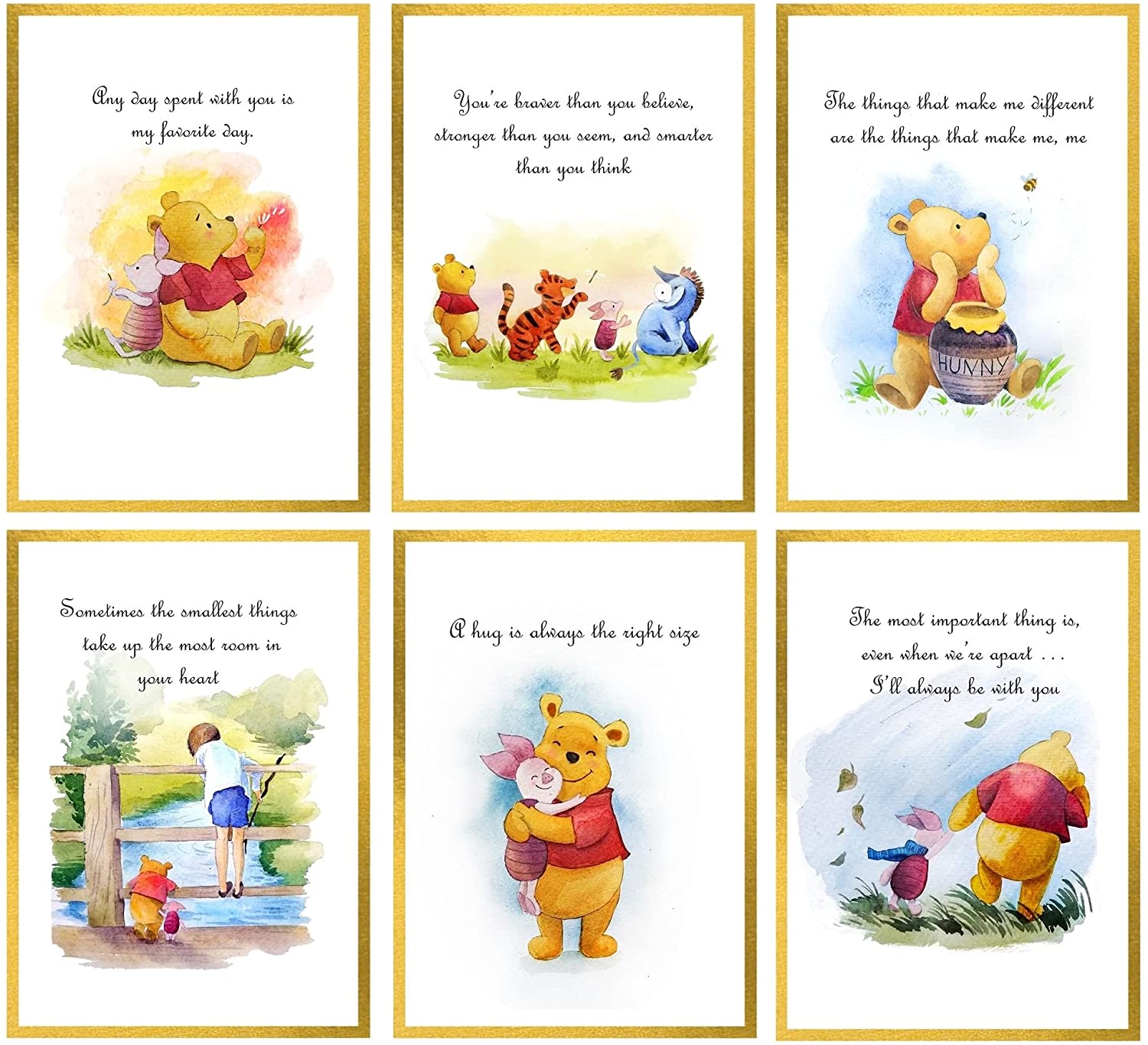 Winnie the Pooh Wall Decor u2013 Unframed Set of 6 Prints, 8×10 Inch, Hand Painted Nursery Wall Decor for Boys and Girls, Kids, Babyu2019s Nursery Decor Playroom Classic Pooh Bear Friends Piglet