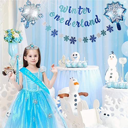 Winter Onederland Birthday Party Decorations Glitter Blue Silver Winter Onederland Banner Cake Toppers Snowflake banner for Winter Wonderland Girl Boy 1st Birthday Party Supplies