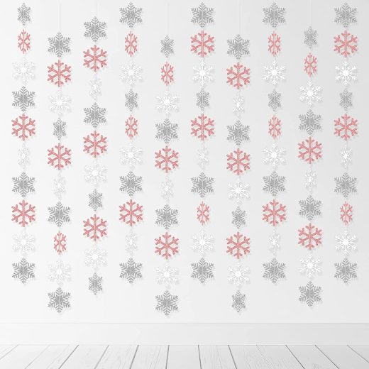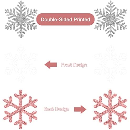 Winter Snowflake Hanging Decorations, Glitter Silver White Rose Gold Snowflakes Christmas Hanging Garland Winter Party Decorations for Winter Wonderland Girls Birthday Christmas Party Decorations