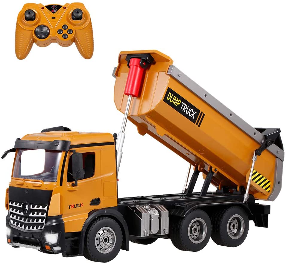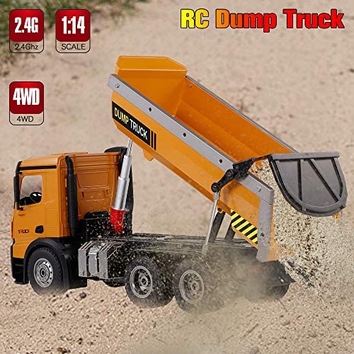 WLtoys 14600 RC Dump Truck, 1/14 Scale 2.4Ghz Remote Control Dump Truck, RC Construction Vehicle Toy with LED Lights and Simulation Sound for Kids and Adults